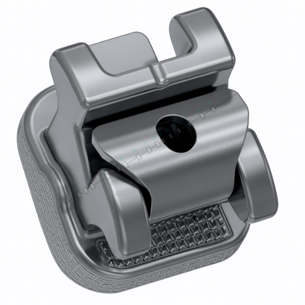 La base contiene pines y pasa por un proceso de texturizado láser que aumenta el área de retención exclusiva, asegurando una mayor eficiencia de adhesión y brindando seguridad al ortodoncista.